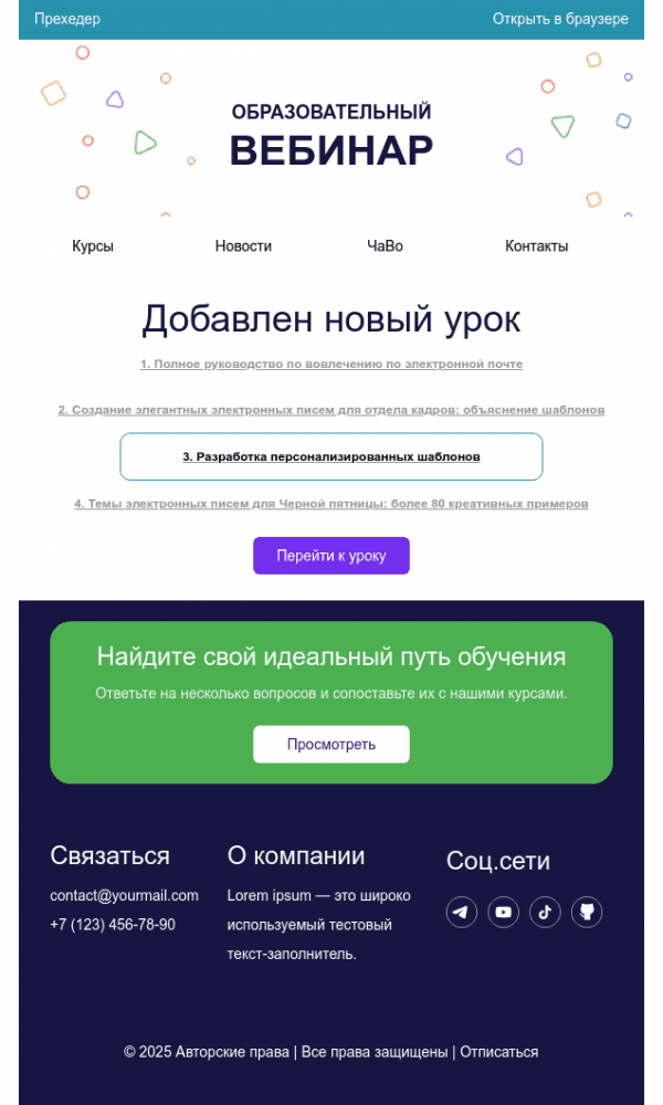 Шаблон адаптивный, легко меняется онлайн без сложной верстки и одинаково хорошо выглядит на телефонах и компьютерах.