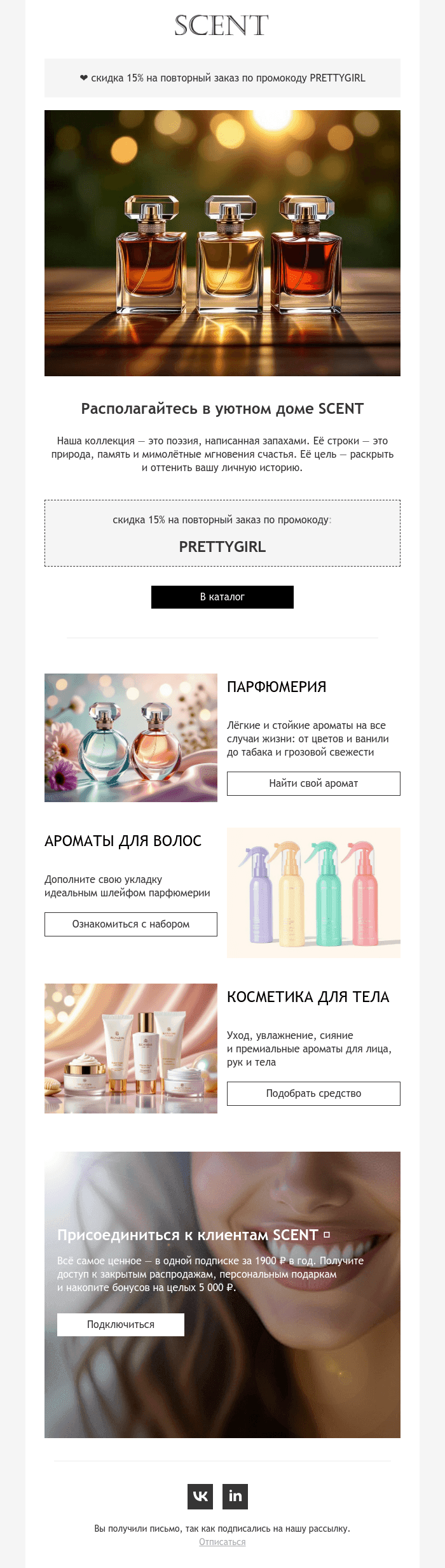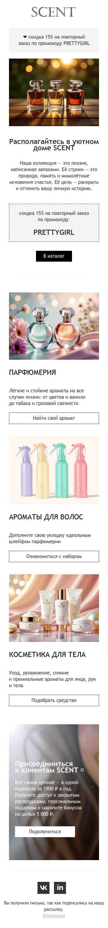 Визуального конструктора писем PixcraftEmail-шаблон — скидка на повторный заказ парфюмерии