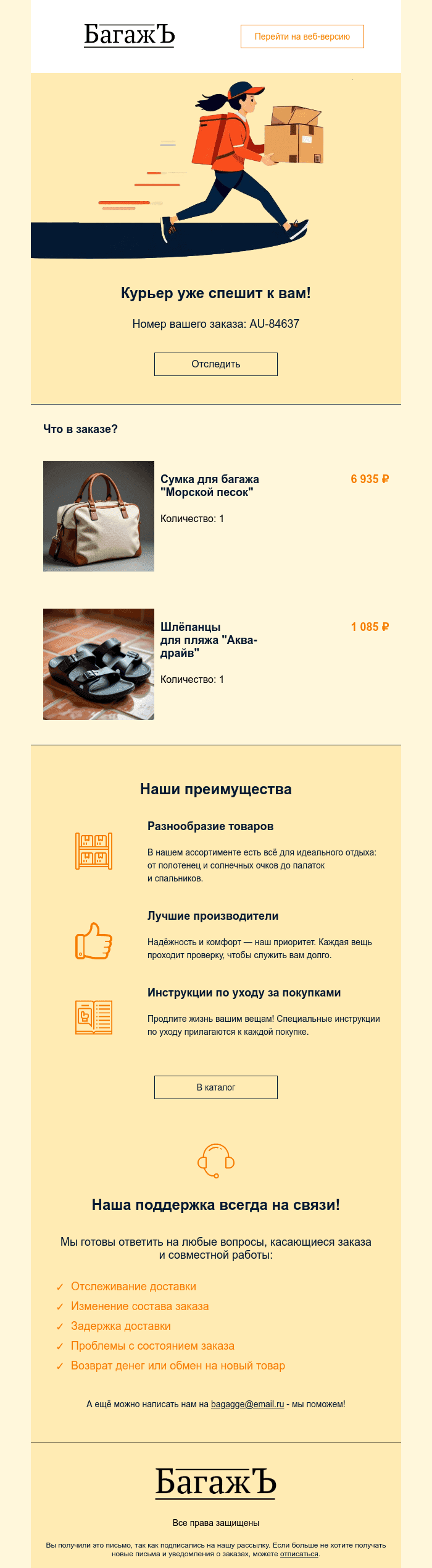 Визуального конструктора писем PixcraftEmail-шаблон — уведомление о доставке заказа