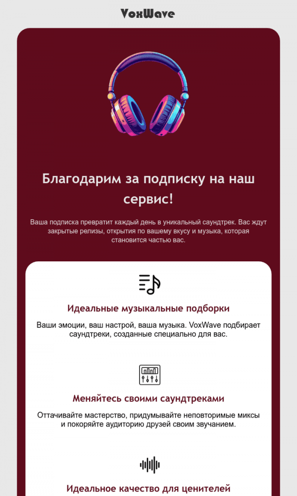 Шаблон сверстан адаптивно, поэтому письмо корректно отображается на телефоне и компьютере. В емейл-конструкторе можно без верстки изменить текст, заменить изображения, кнопки и ссылки. Готовый email экспортируется в HTML, AMP, ZIP с картинками или EML и подходит для отправки через любую платформу рассылок.