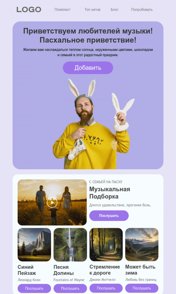 Шаблон легко редактируется и будет корректно отображаться как на мобильных устройствах, так и на компьютерах. Все элементы — текст, изображения и кнопки — можно редактировать прямо в браузере. Когда все готово, макет можно скачать в форматах HTML, AMP, ZIP с изображениями или EML и отправить через сервис рассылок.