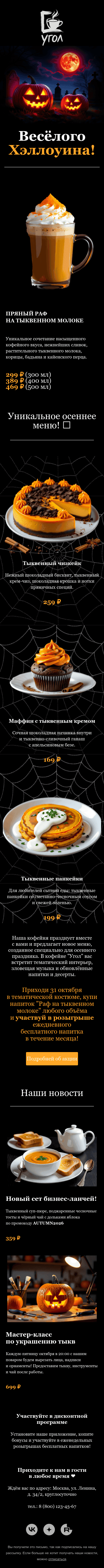 Визуального конструктора писем PixcraftЕмейл-шаблон для Хэллоуинского меню в кафе