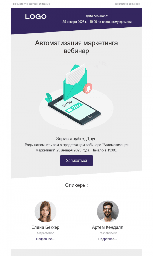 Письмо создано с учётом современных стандартов отображения: оно одинаково хорошо выглядит на мобильных устройствах, планшетах и компьютерах. Редактировать тексты, изображения, кнопки и другие элементы можно прямо в конструкторе, без знаний верстки. Готовый шаблон легко экспортируется в форматы HTML, AMP, ZIP с картинками или EML и подходит для использования на любых платформах рассылок.