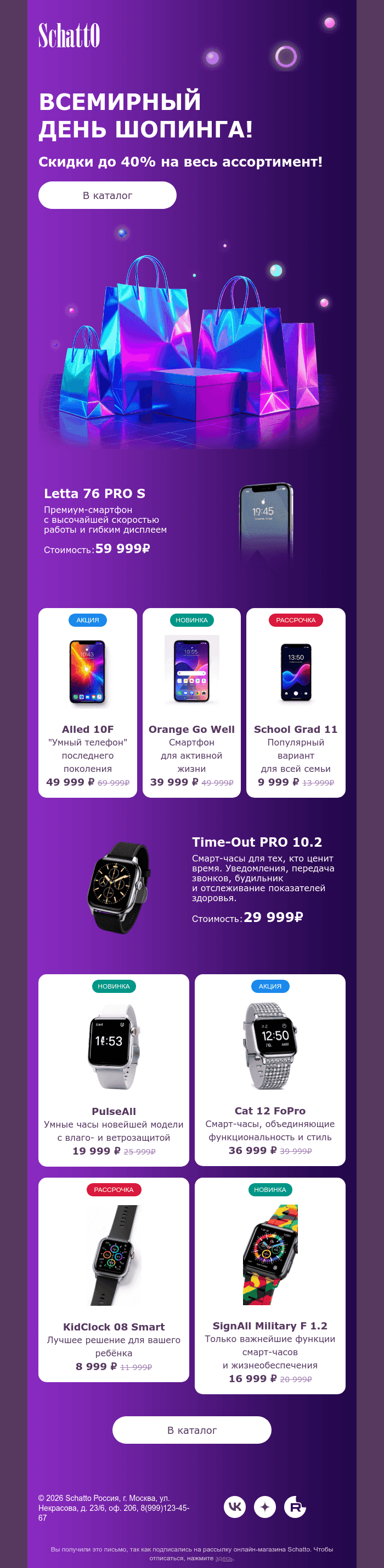 Визуального конструктора писем PixcraftЕмейл-шаблон: всемирный день шопинга