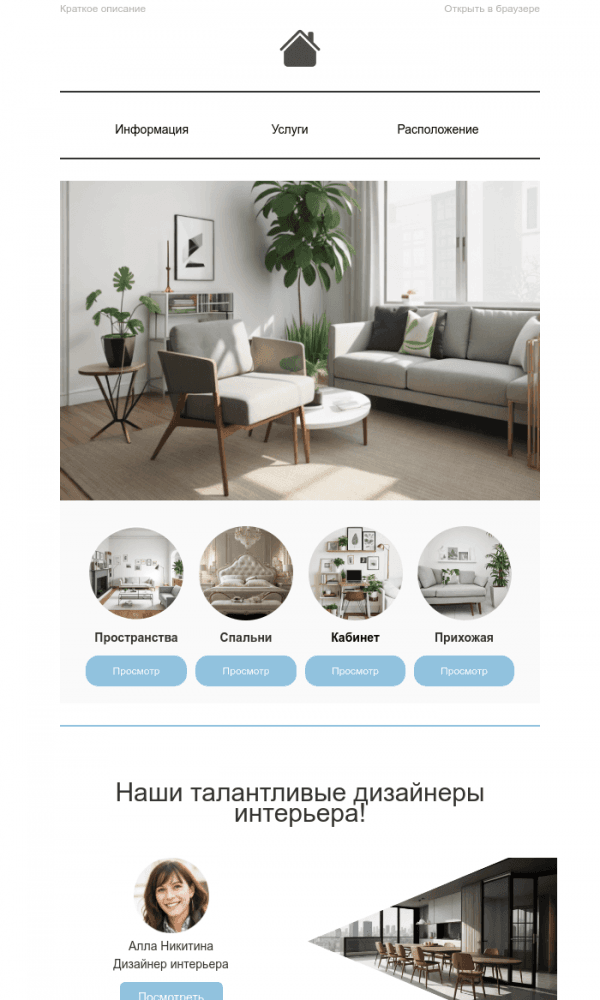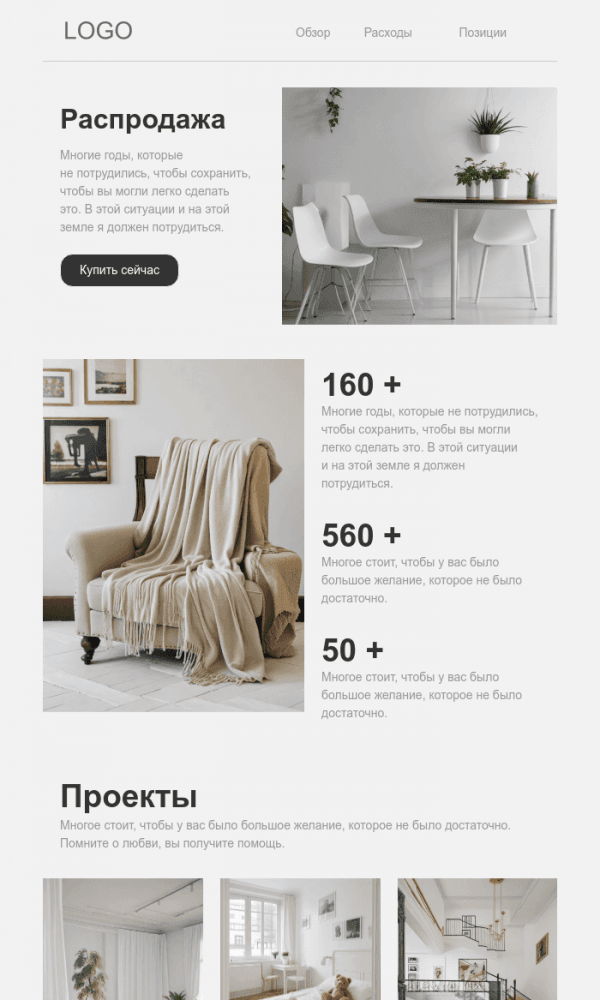 Все блоки письма легко редактируются: можно обновить тексты, загрузить новые фотографии и настроить кнопки. Письмо адаптируется под все устройства и будет выглядеть аккуратно на телефонах и компьютерах.