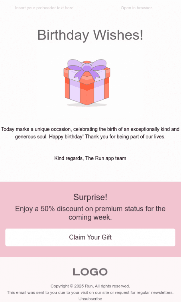 The template is easy to edit and looks great on all devices — both mobile and desktop. All elements — text, images, and buttons — can be customized directly in the browser. Once the email is ready, it can be downloaded in HTML, AMP, ZIP with images, or EML formats and sent through any mailing service.