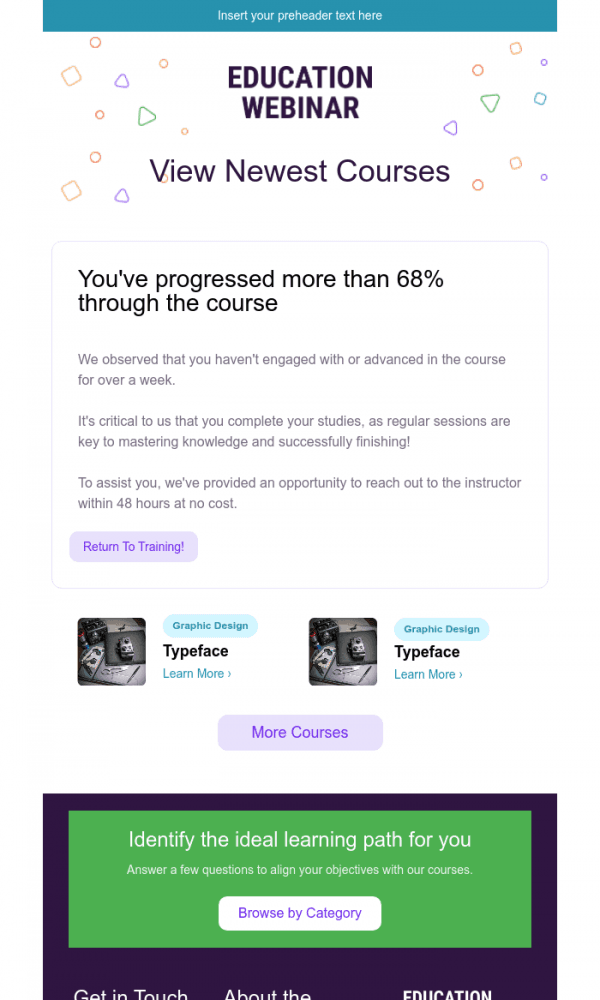 An email template designed for tech companies, online schools, and educational projects that host webinars and seminars. The design features purple and white tones, creating a modern and stylish impression.