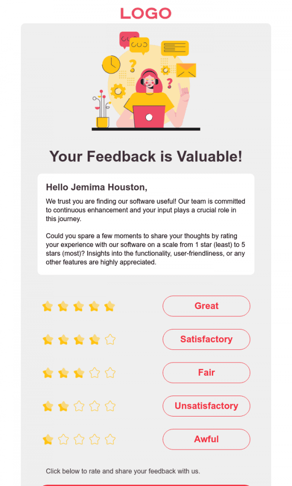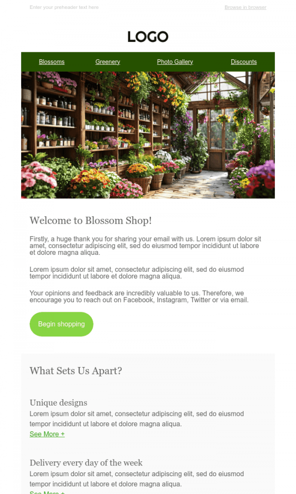 The template is easy to edit, and all elements can be updated directly in the browser. The email adapts to all devices, whether it’s a mobile phone or a computer.